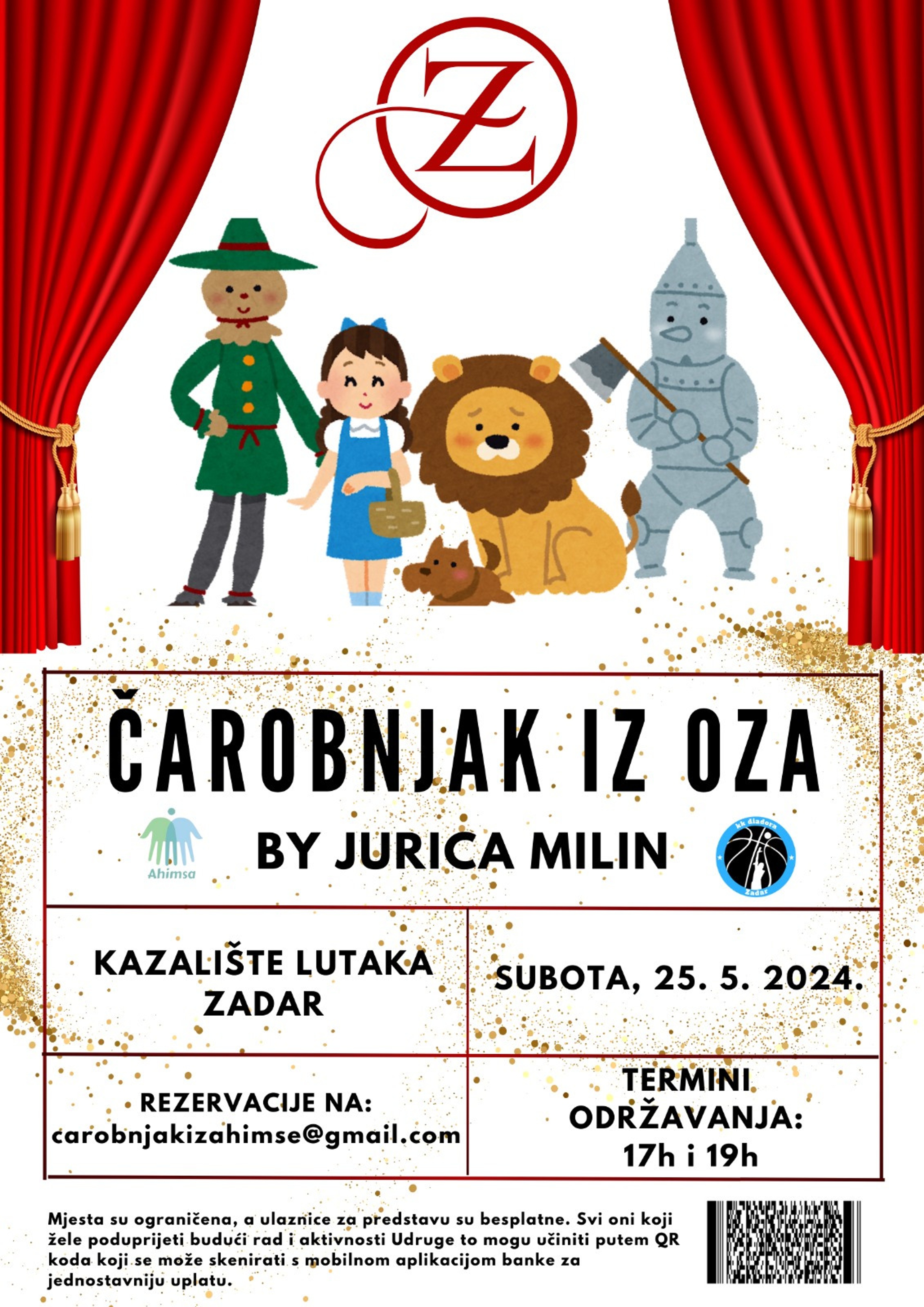 Udruga mladih Ahimsa, uz financijsku podršku Košarkaškog kluba „Diadora“, organizira kazališnu predstavu pod nazivom „Čarobnjak iz Oza“.